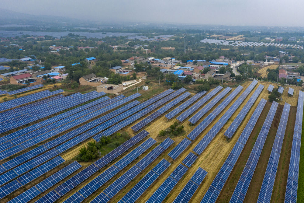 這是2025年6月25日在山西省運城市芮城縣夭上村拍攝的光伏基地(無人機照片)。新華社記者 楊晨光 攝